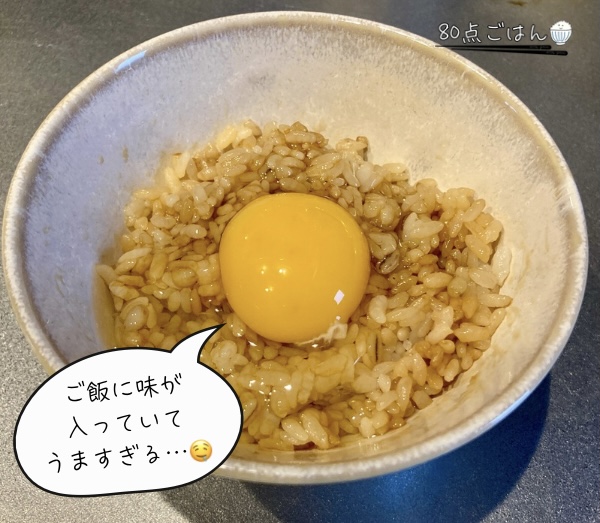 - そのご飯に直接卵を落とす(ご飯の中央を凹ませると芸術点が増します)